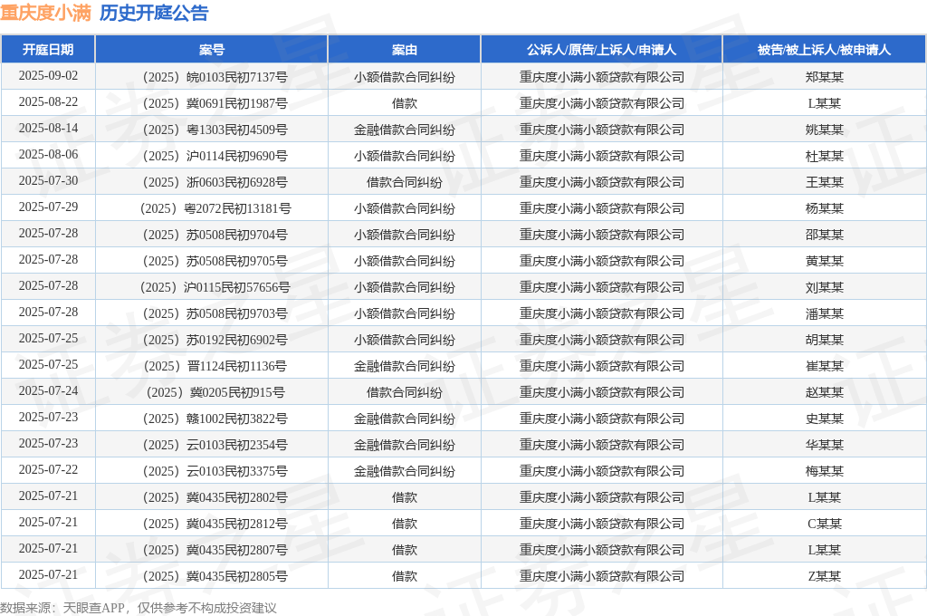 本站消息,根据天眼查APP显示,近日公布了一则重庆度小满小额贷款有限公司作为原告/上诉人的开庭公告,详细内容如下: